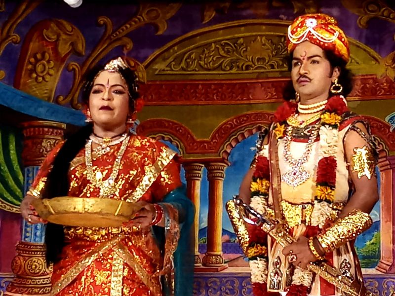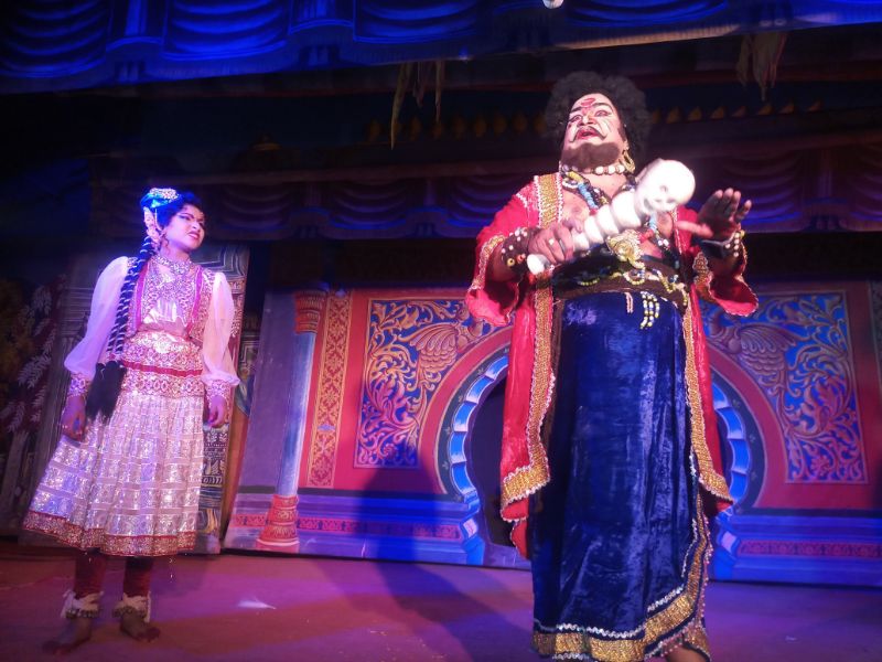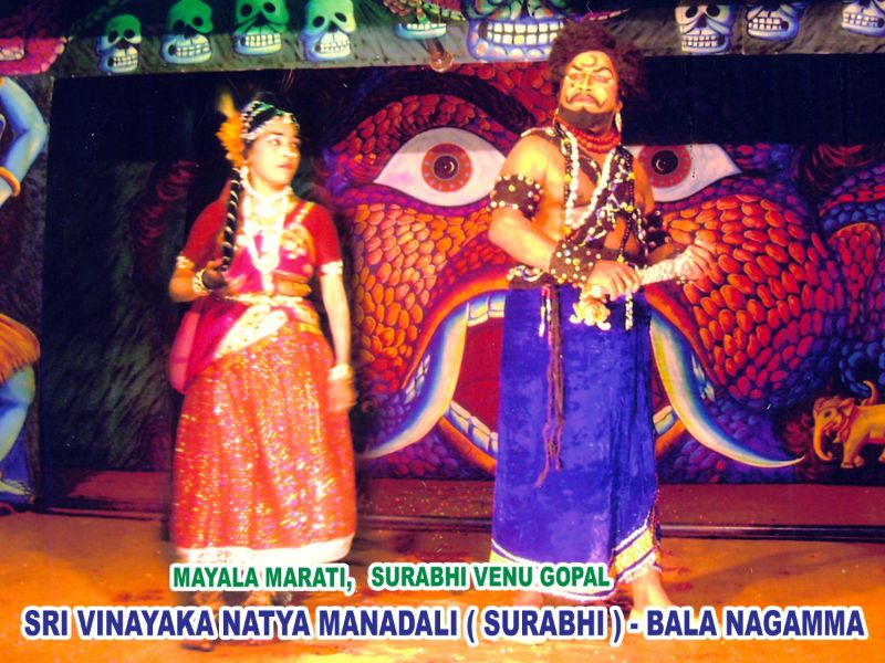 Then entry of Mayala Marati in an interesting incident. Mayala Marati was a wiked and used to punish beautiful ladies and goodmen. Marati is having a lover Sargu. He was a worshipper of Kshudra Devatha. Also, he brought Balanagamma by miracles into his custody. Balavardhi Raju son of Karyavardhi, all the family members, soldiers of Karyavardhi were stone shaped in the custody of Mayala Marathi. Mayala Marati life secret was in the parrot. Balavardhi Raju, cleverly brought the parrot and killed. After all the poisoned persons were released and were happy.