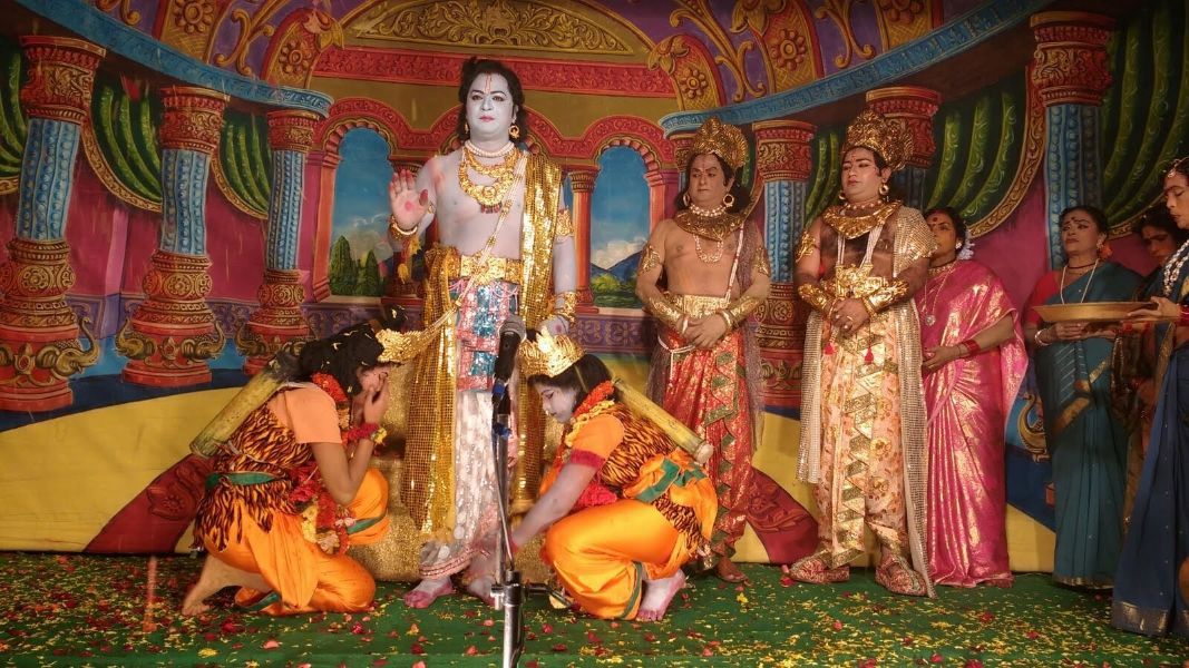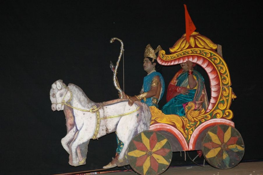 Story: Sri Rama along with Sita, returned to Ayodya, after killing Ravana and his followers. The drama starts with Sri Rama Pattabhisekam. He ruled the kingdom with peace and joy. He used to get the daily information about his people by “Bhadra”. In the meanwhile, Bhadra, one day he was shy and unhappy to say a unfortunate information to Rama i.e., a washerman was quarrelling with her wife, he quarreled said that was not like “Rama”, who brought his wife, after spending one year with Ravana.